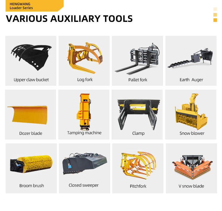 Moderné nakladače sú zvyčajne vybavené rýchlo vymeniteľnými pracovnými zariadeniami, ako sú lopaty, vidlice, drapáky atď., aby sa mohli prispôsobiť rôznym prevádzkovým potrebám.